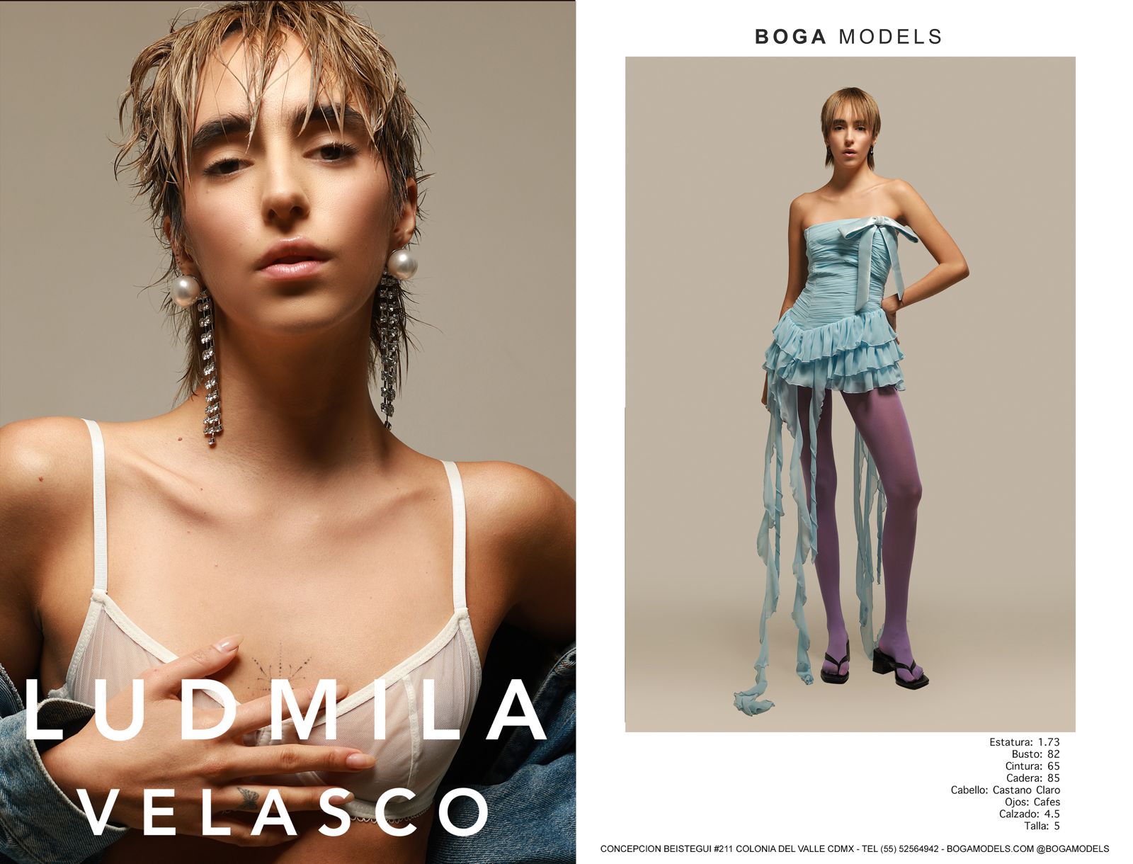 Altura 1.73 | Busto 82 | Cintura 65 | Cadera 85 | Cabello Castaño Claro | Ojos Cafés | Calzado 4.5 | Talla 5
