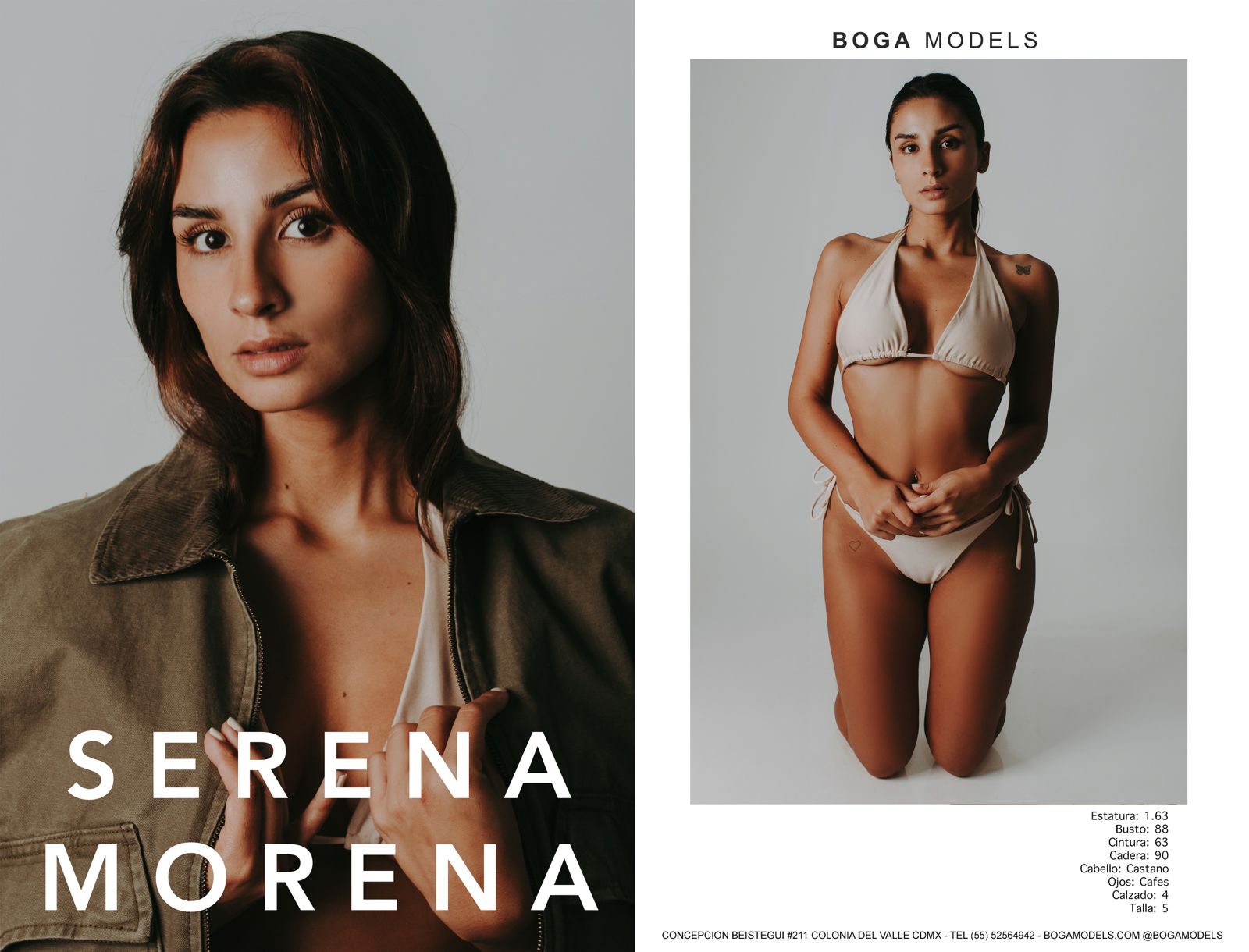 Altura 1.63 | Busto 88 | Cintura 63 | Cadera 90 | Cabello Castaño | Ojos Cafés | Calzado 4 | Talla 5